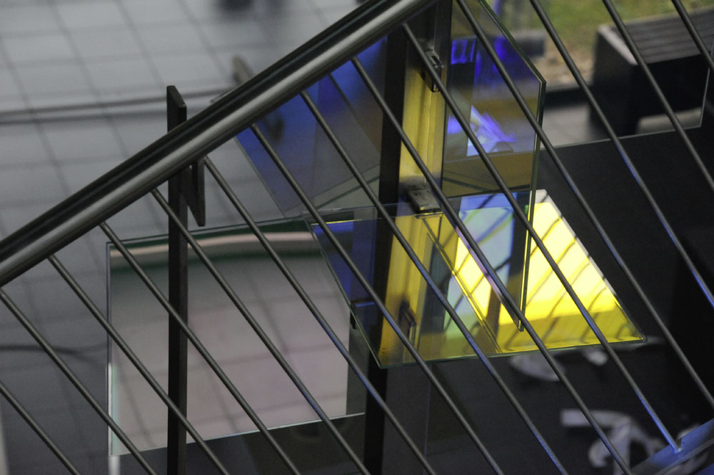 Das Herzstück des von artefont gestalteten Corporate Designs der Spektrale-Ausstellung besteht aus 13 Farbstreifen, die während der Ausstellungswochen auch die Rheingoldhalle von außen farblich markierten.