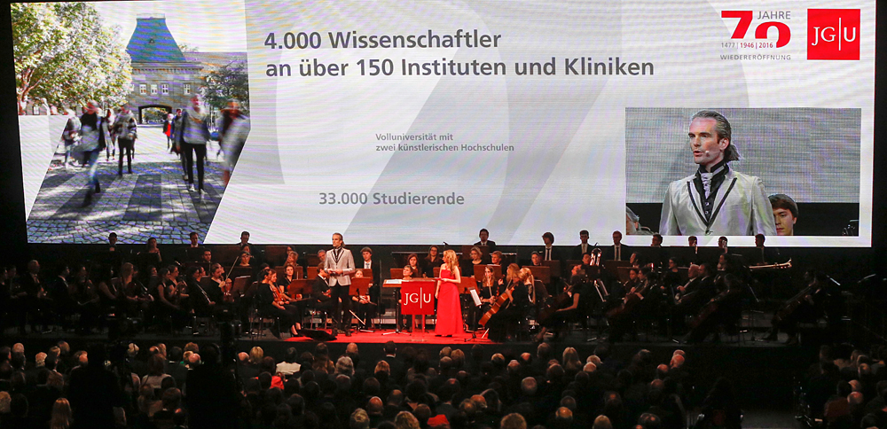 - 70 Jahre JGU: Gestaltung der Bühne und der Drucksachen, Organisation und Live-Regie