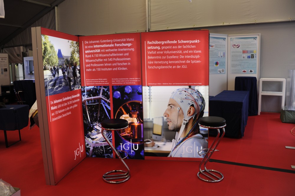 - 21. MAINZER WISSENSCHAFTSMARKT – Gestaltung und Organisation des jährlichen Events der MAINZER WISSENSCHAFTSALLIANZ auf dem Theatervorplatz in Mainz – über 800 qm Zelte.
